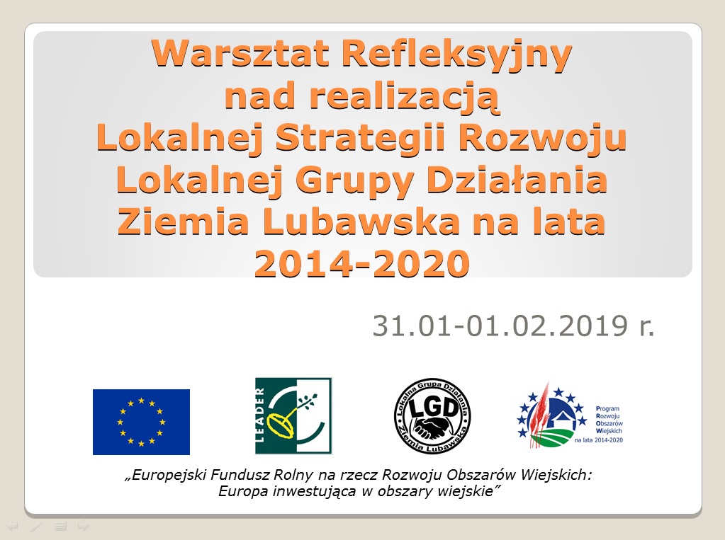 W dniach 31.01 – 01.02.2019 roku odbył się Warsztat Refleksyjny nad realizacją Lokalnej Strategii Rozwoju Lokalnej Grupy Działania Ziemia Lubawska na lata 2014 – 2020.